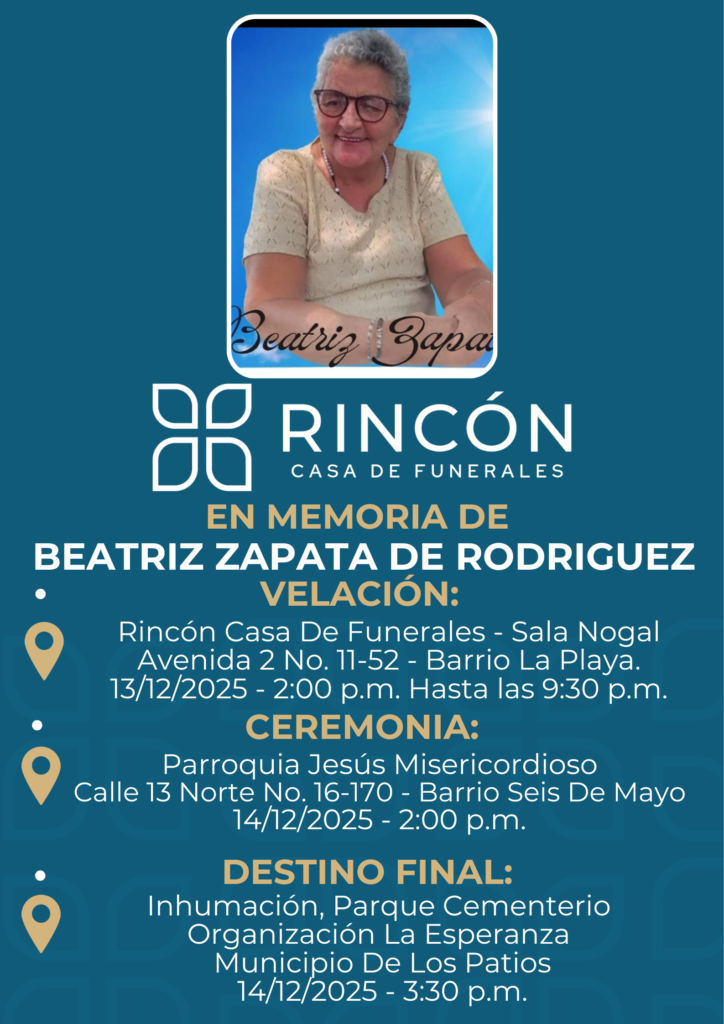 Rincón Casa de Funerales abre sus puertas a tu voz y a la narración de tu recuerdo. Te invitamos a conocer los obituarios de tus seres queridos. Aquí podrás narrar quienes fueron, qué momentos compartidos atesoras y cómo su vida tocó tu corazón. Al plasmar sus virtudes, sus risas y los detalles que los hacían únicos, estarás Conmemorando su Vida.